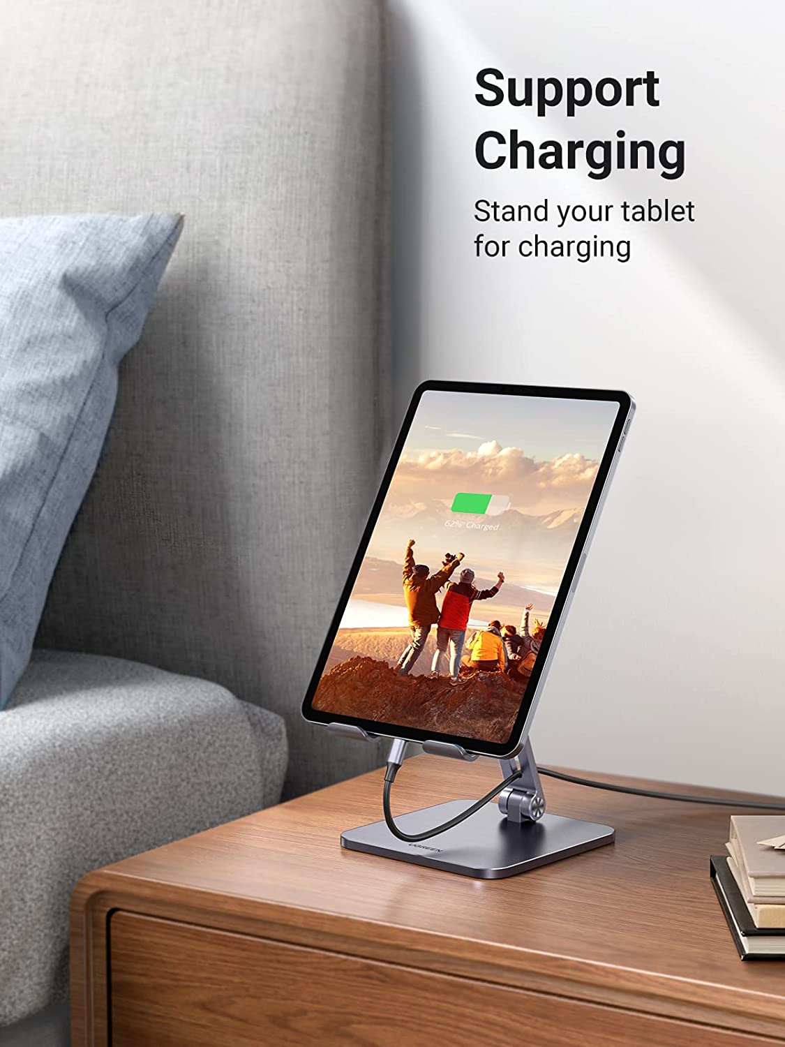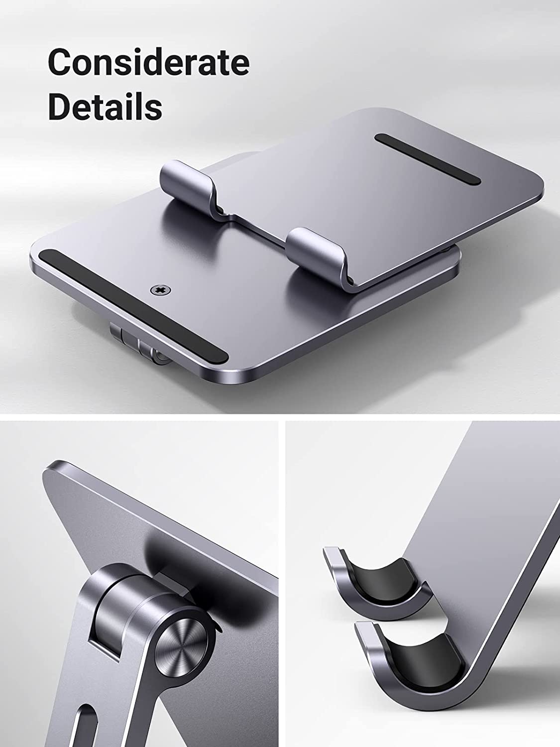 UGREEN Tablet Stand Holder for Desk Adjustable Aluminum Portable Stand Holder Desktop Foldable Dock Heavy Duty Metal Base Compatible with ipad pro 12.9, 9.7, 10.5, ipad air Mini 4 3 2, Grey
