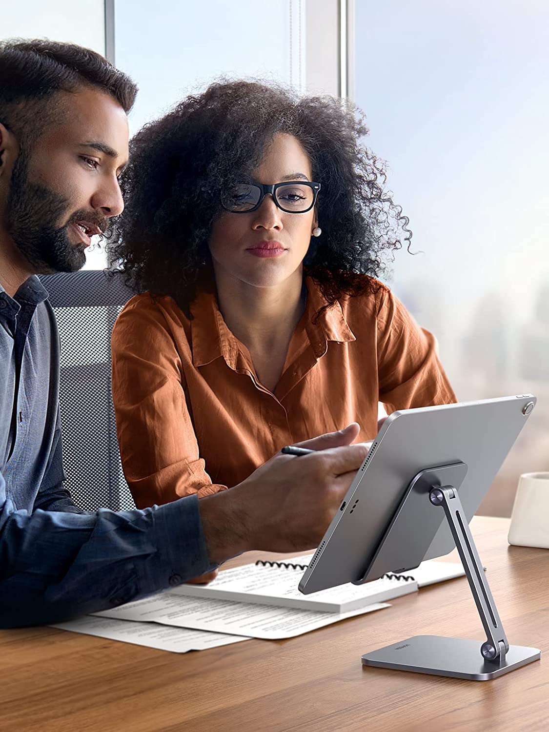 • Foldable Design: This ipad pro stand for desk adjustable can be fully folded into a bag size. The ipad mini 12.9 stand takes little space when storage, easy to carry in your bag, a perfect addition to travel or business trip.