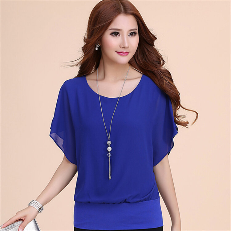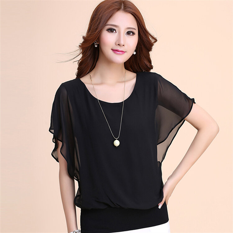 Loose Short-Sleeved Chiffon Blouse New Arrival Women's Korean Style Large Size Body Slimming Elegant Base-Layer Shirt for Summer Top T-Shirt