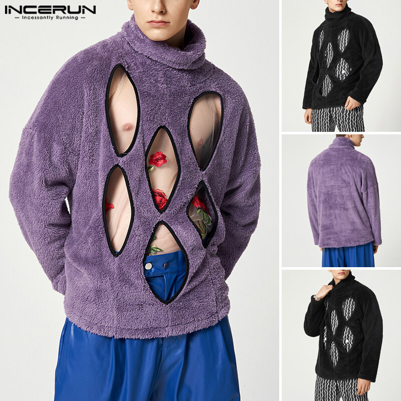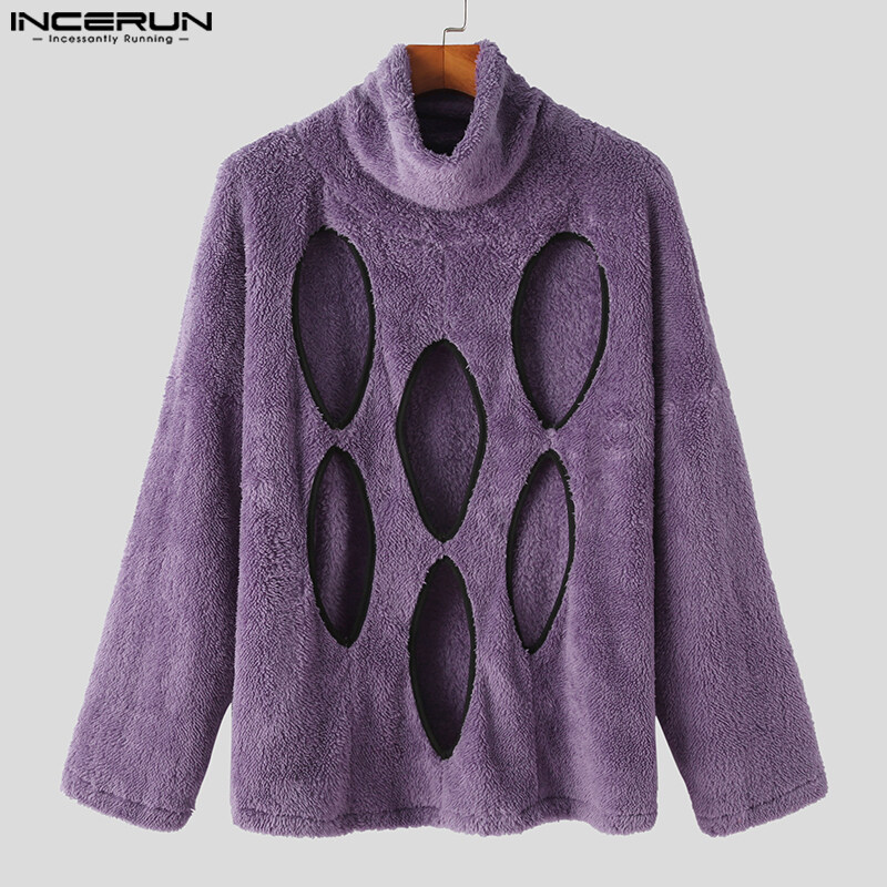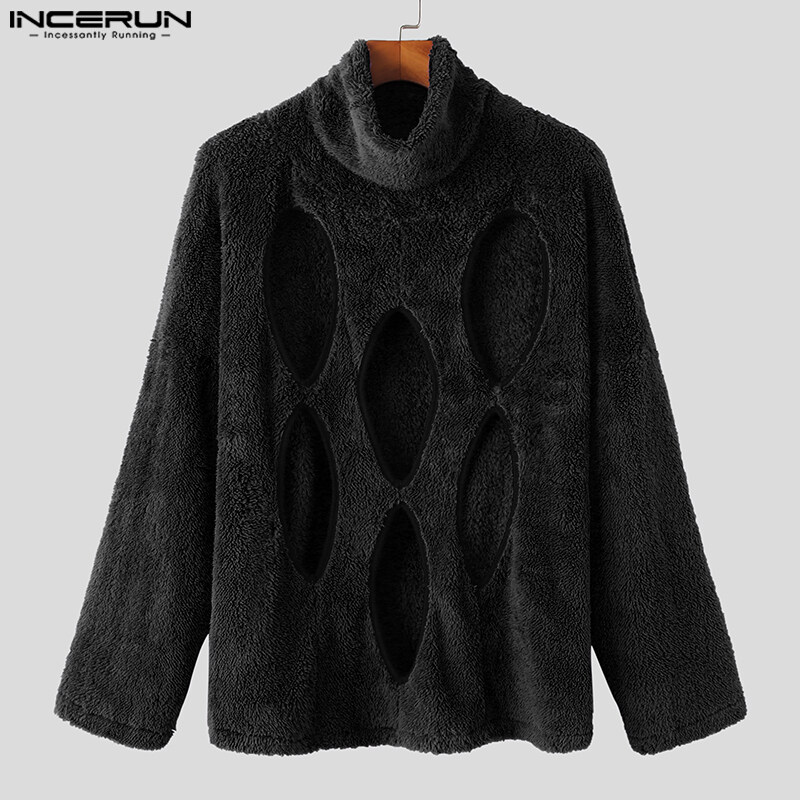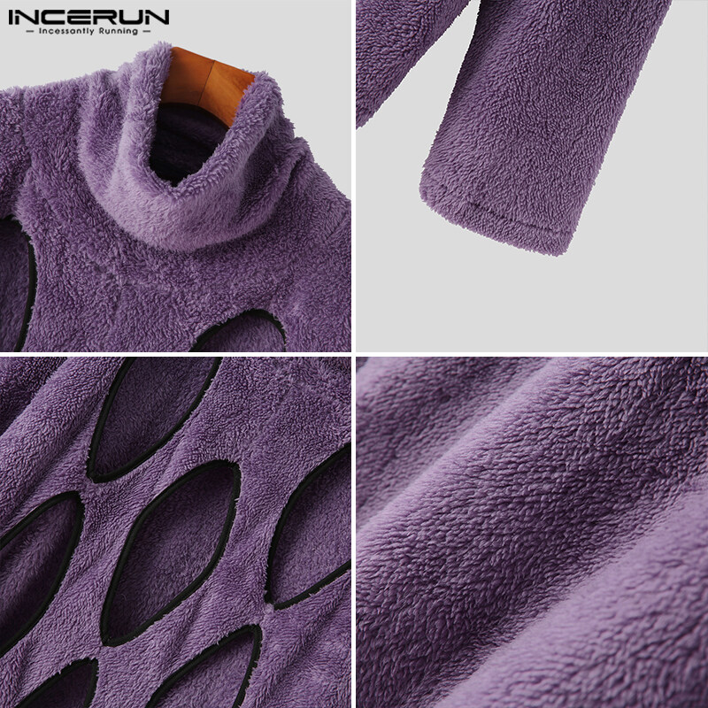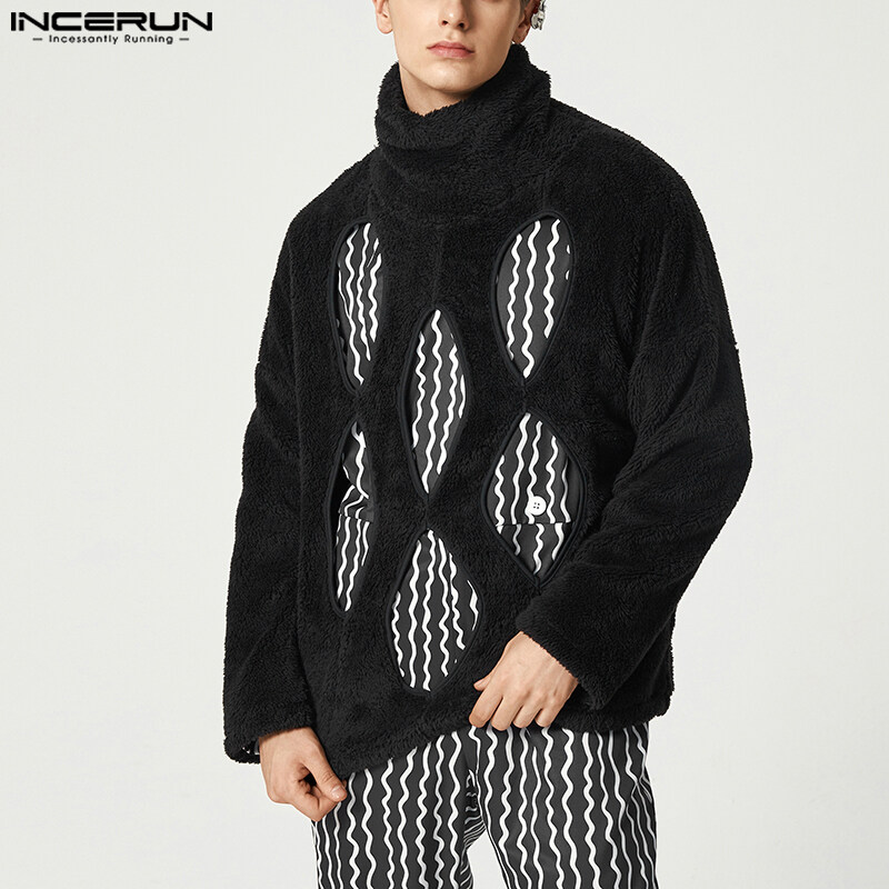 [Perfectly] INCERUN Men's Fashion Fluff Burnt Long Sleeve High Neck Pullover Sweater (Western Style)