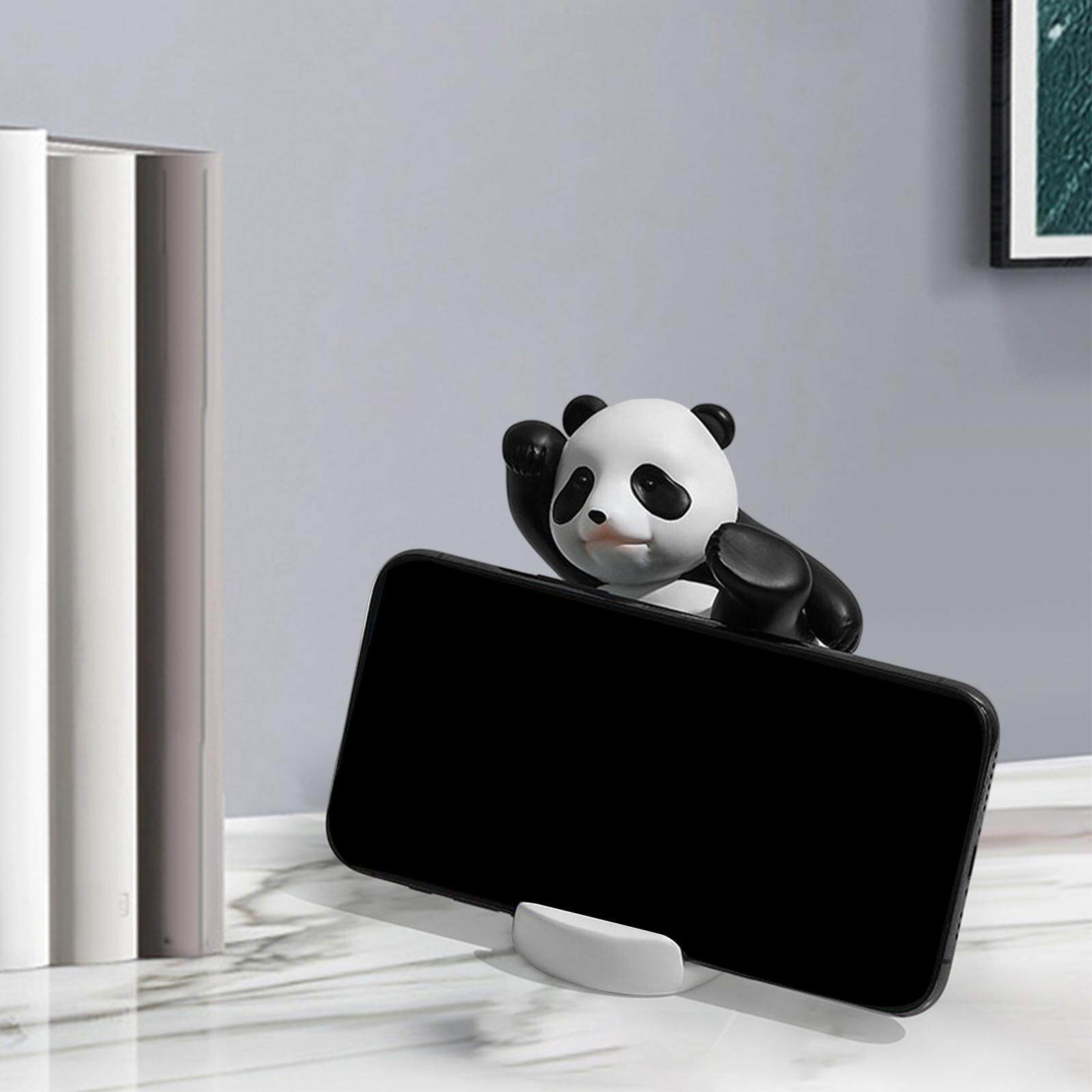 milageto Lovely Panda Statue Desktop Phone Holder Resin for Office Tabletop Home