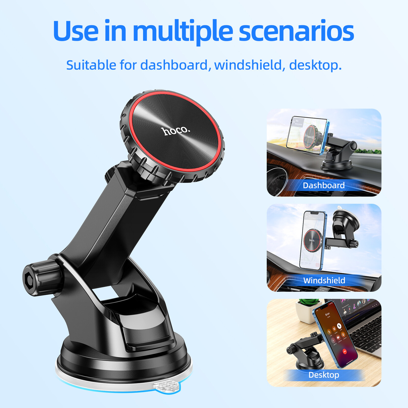 Hoco CA98 Original Magnetic Phone Holder For Car Windshield Cradle Strong Sucker Dashboard Mount Phone Stand For All Smartphones Universal