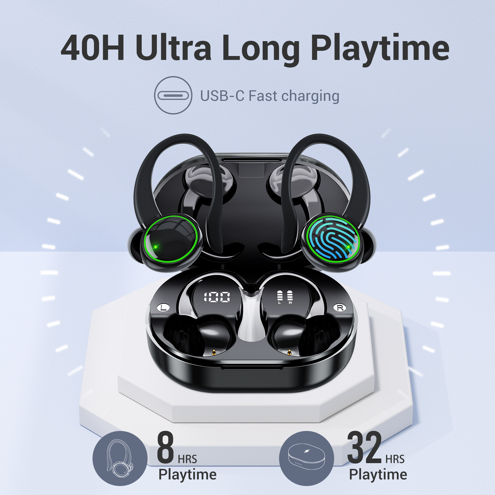 Newmsnr 8H Play Time Bussiness High End Wireless Earbuds IPX7 Waterproof Bluetooth Earphone Hi-Fi Stereo Sound Earphones Power Display In Ear Headphones Noise Reduction Sport Headset Touch Control Hea