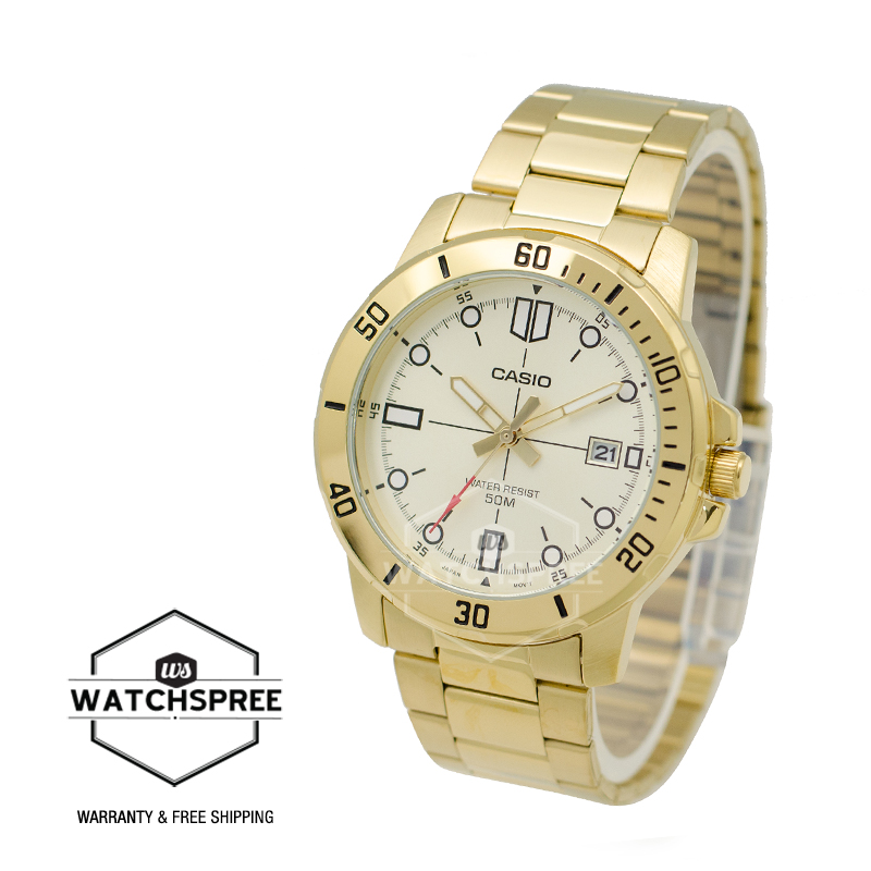 [Watchspree] Casio Men's Diver Look Gold Tone Stainless Steel Band Watch MTPVD01G-9E MTP-VD01G-9E