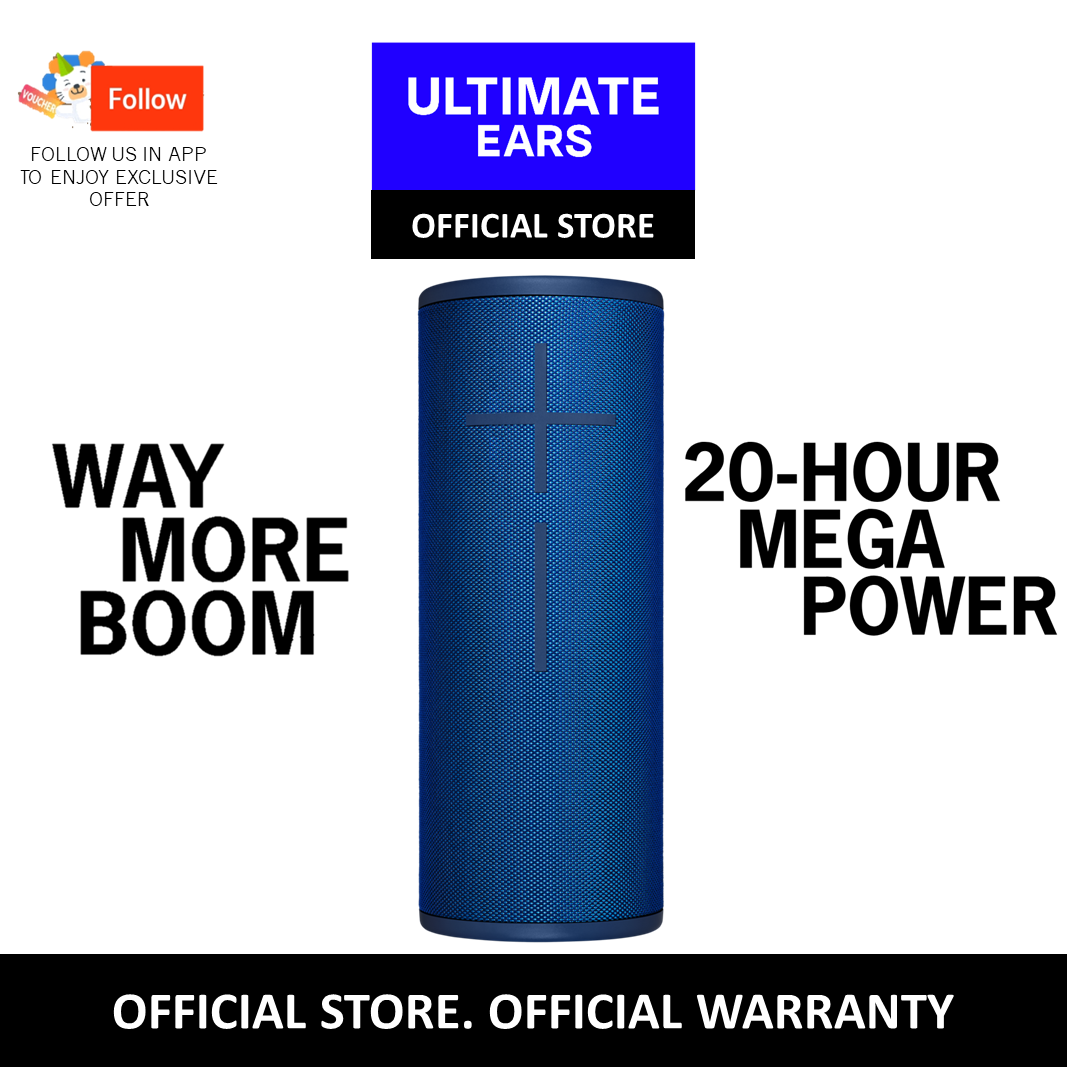 Ultimate Ears MEGABOOM 3 Wireless Bluetooth Speaker (Powerful Sound + Thundering Bass, Bluetooth, Magic Button, Waterproof, Battery 20 hours, Range 45 m) - (Sunset Red, Ultraviolet Purple, Lagoon Blu