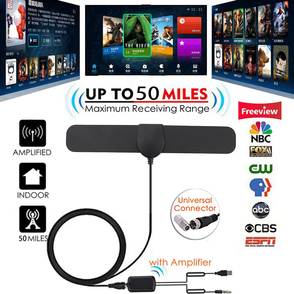 JvGood Amplified HD Digital TV Antenna Long 50 Miles Range Support 1080p TV's Indoor Powerful HDTV Amplifier Signal Booster- 4M Cable