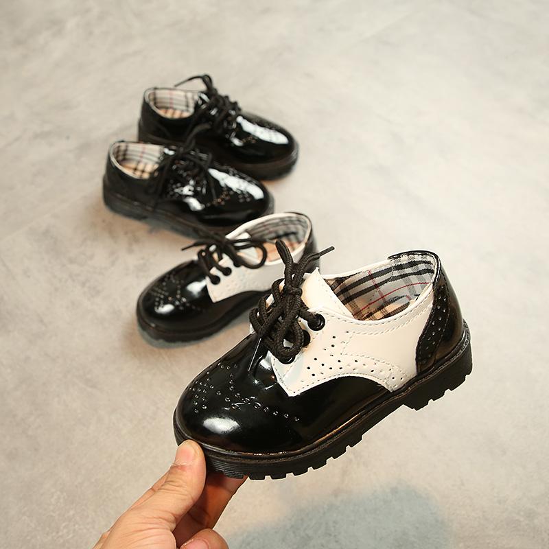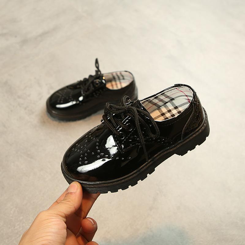 Boys and Girls Black Leather Shoes 2019 Spring and Autumn New British Style Children's 61 Performance Shoes Baby Kindergarten Shoes