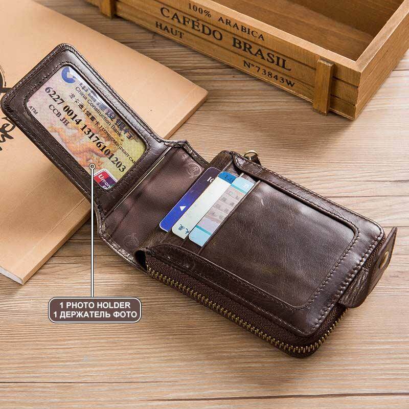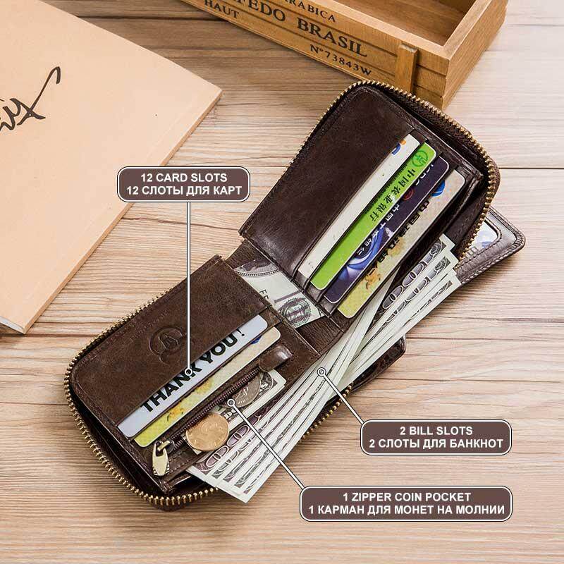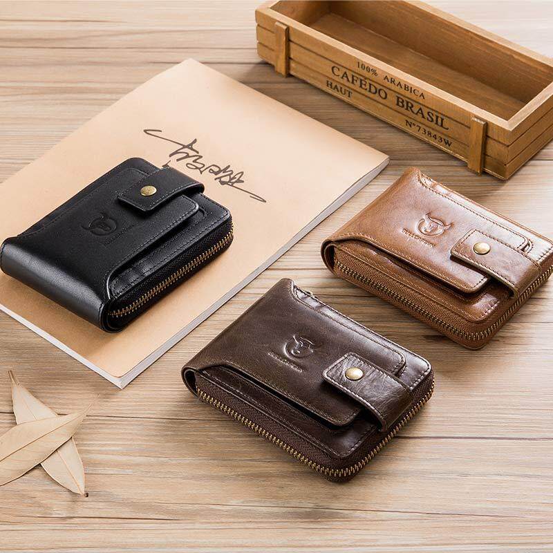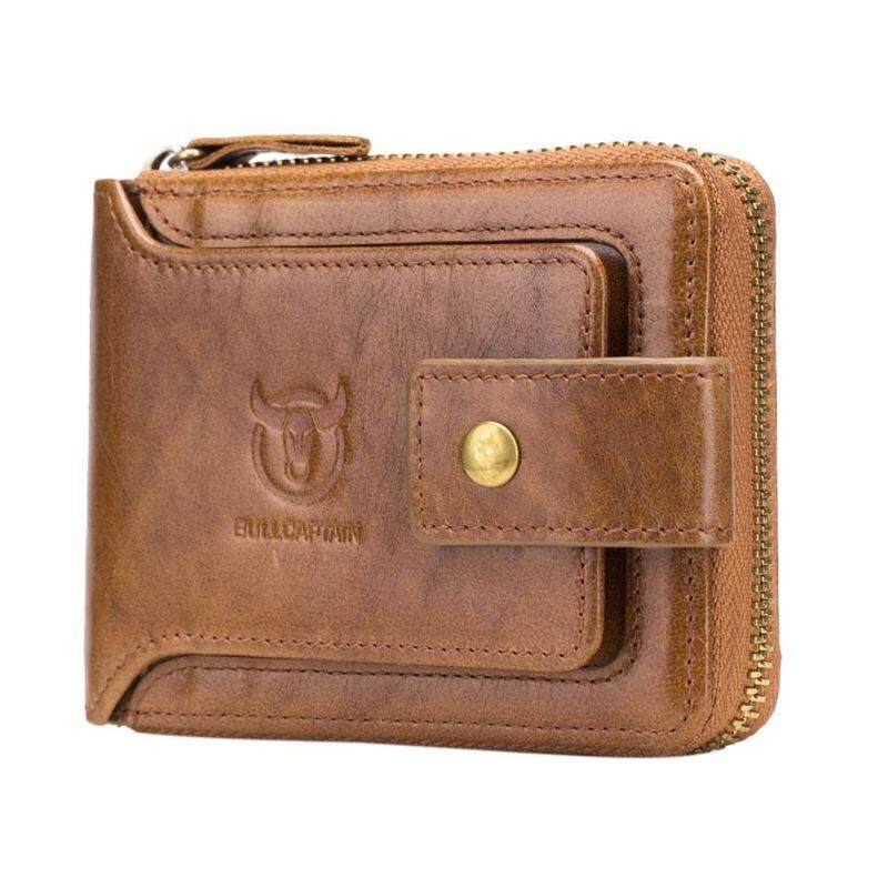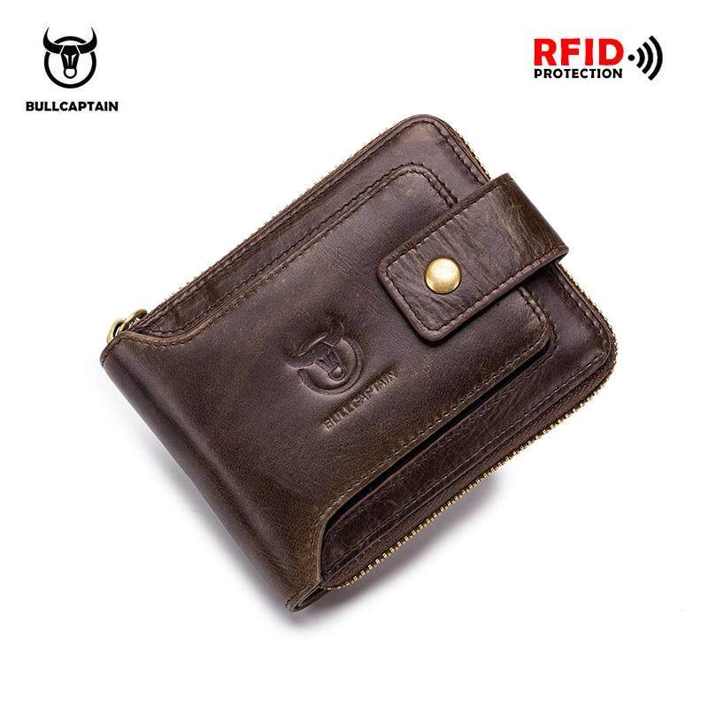 BULLCAPTAIN Men Genuine Leather Brand RFID Wallet Male Organizer Coin Purse Pockets Slim Fashion Zipper Clamp Wallet Card Holder