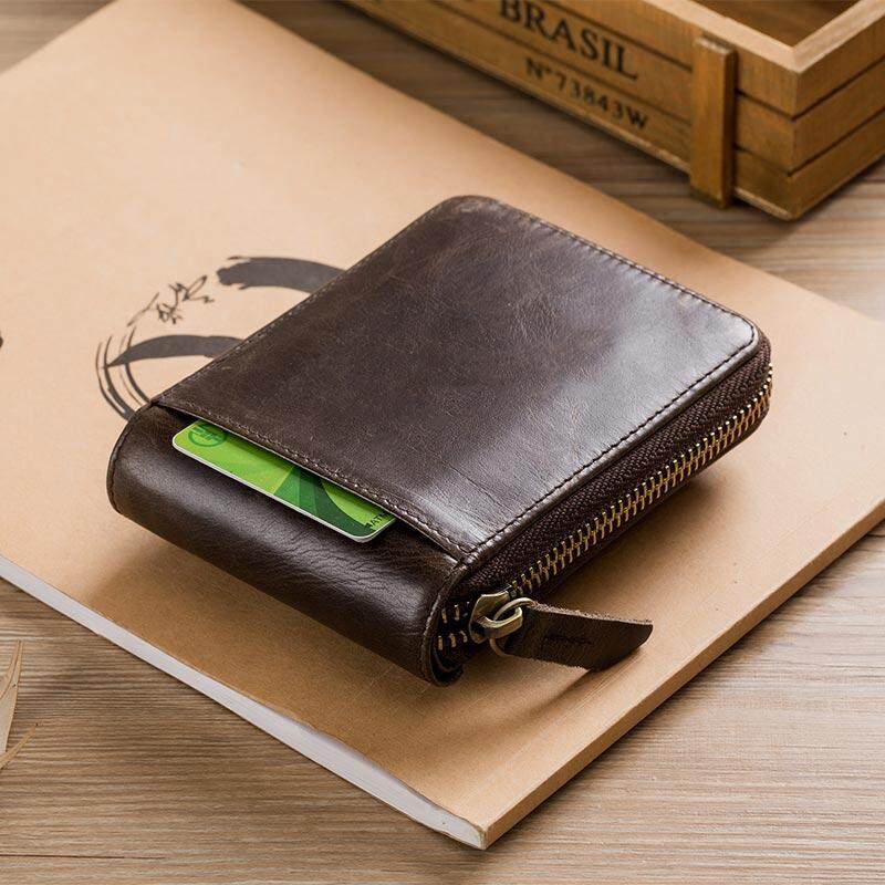 Trifold Wallet Men - Genuine Leather Wallet - Brown Wallet - Compact Wallet - 4199 Oxhide- Excellent Christmas Gift Idea