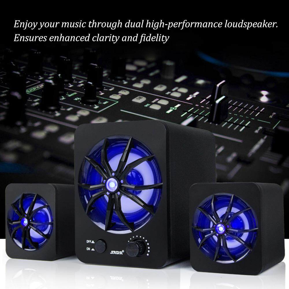 SADA D-207 Computer Speaker USB Wired Combination Speaker Colorful LED Bass Stereo Music Player Subwoofer Speaker for Desktop Laptop Notebook Tablet PC Smart Phone