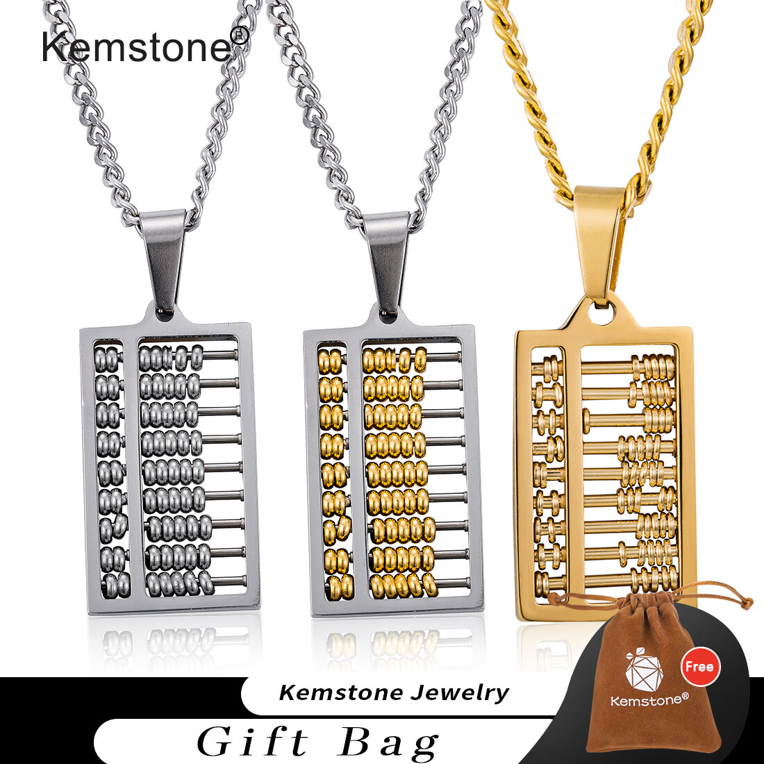 Kemstone Fashion Titanium Steel Abacus Creative Design Pendant Necklace for Women Men Jewelry Gifts