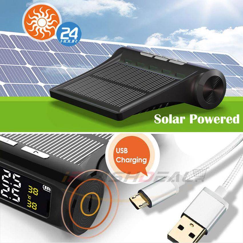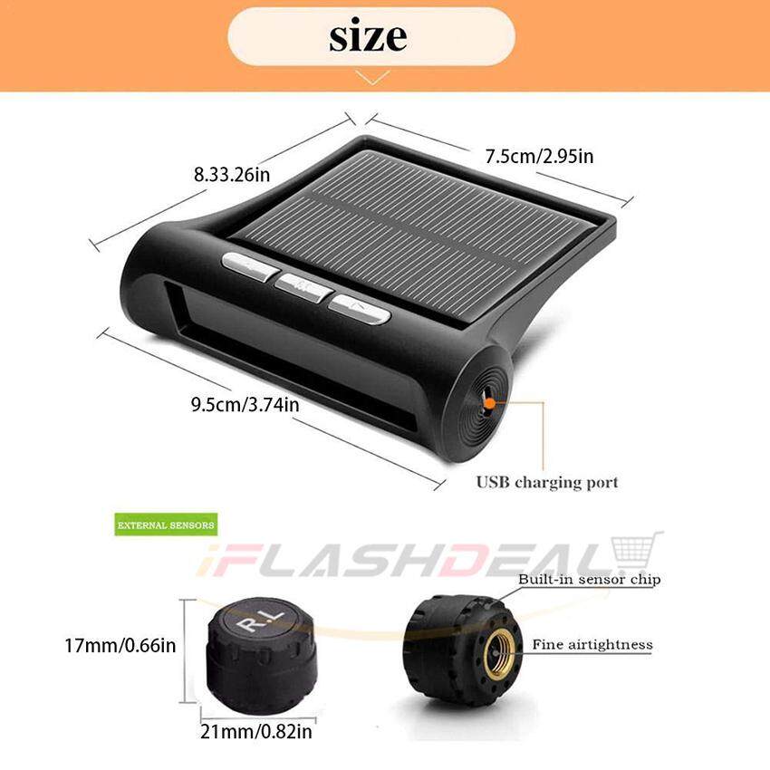 iFlashDeal Tire Pressure Monitoring System Car Tyre Pressure Alarm Solar Power Panel USB Charging TPMS Universal Wireless with 4 External Sensors Real-time LED Display Tire Pressure Temperature Detect
