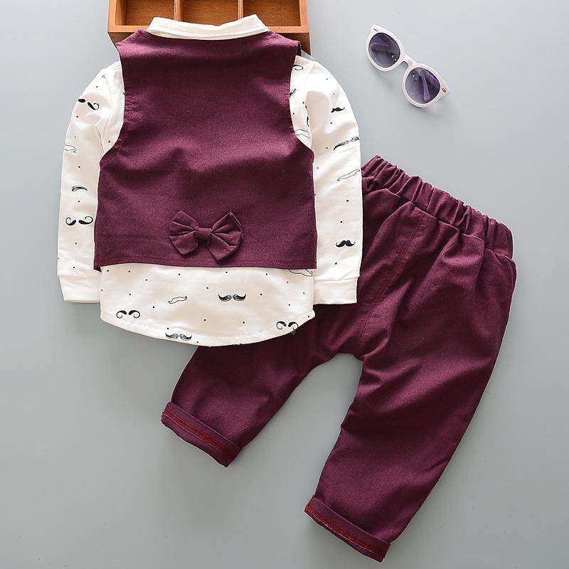 DIIMUU Toddler Baby Boy Clothing Gentlemen Suits Kids Children Boys Clothes Wedding Party Red Bow Tie British Style Set Fit 1-5Y
