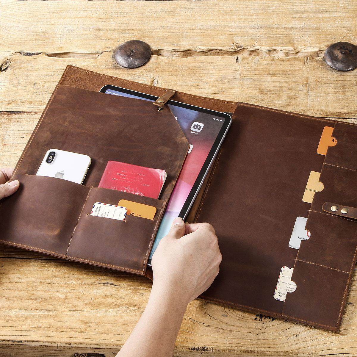 CONTACTS FAMILY Genuine Cowhide Leather Case for iPad Pro 12.9 Inch 2019 Business Folio Cover with pencil holder phone pocket case for 12.9 inch Ipad