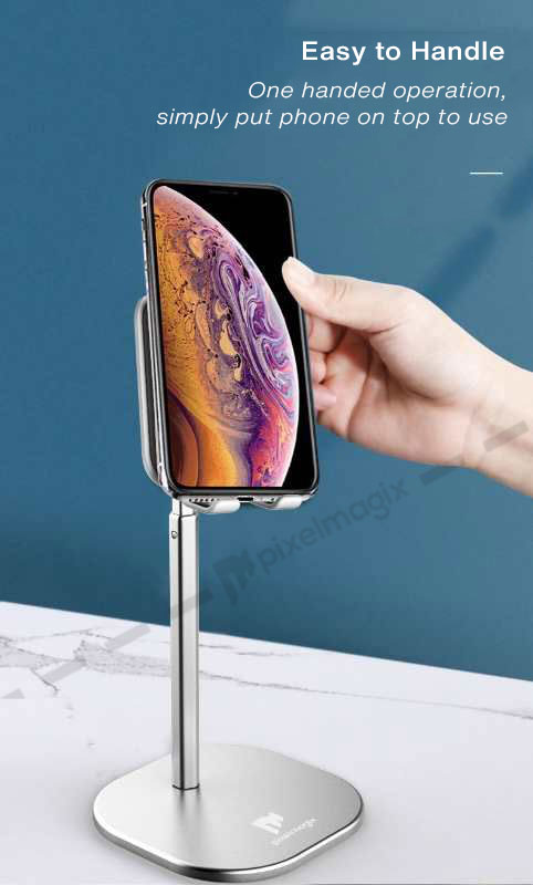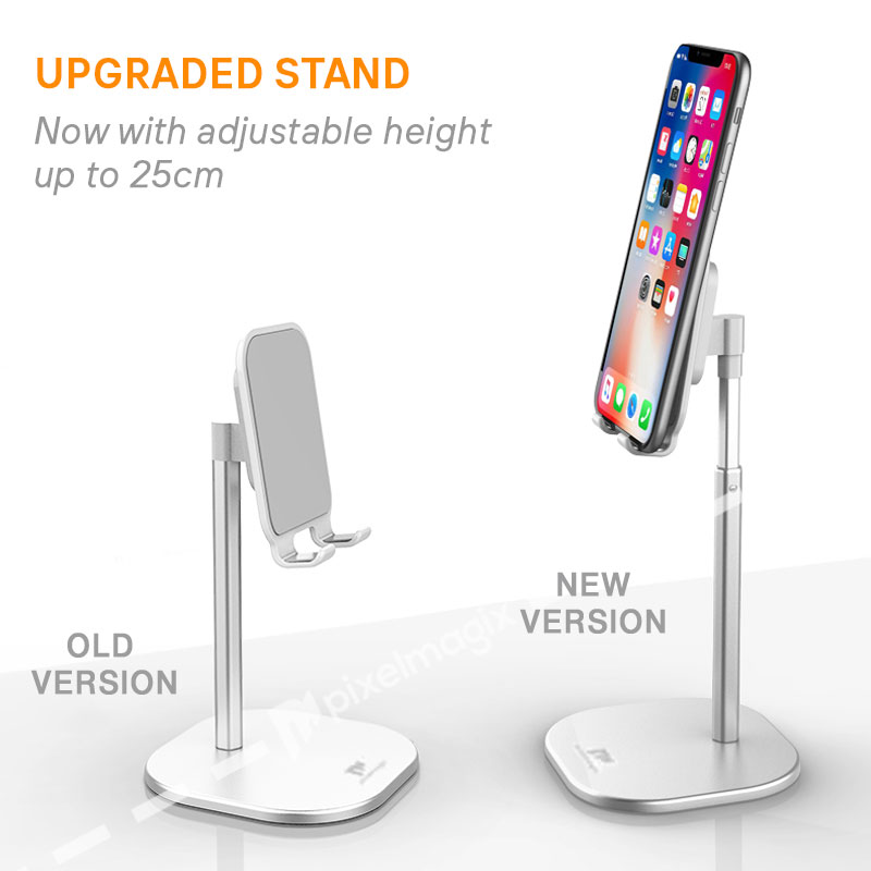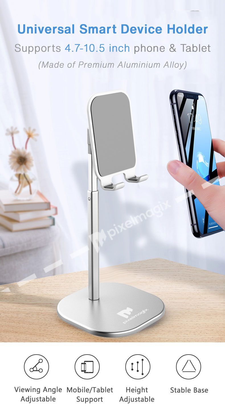 PixelMagix Adjustable Height Smartphone Metallic Mobile Holder Stand for Phone / Tablet Tablet Mount (Up to 25cm)