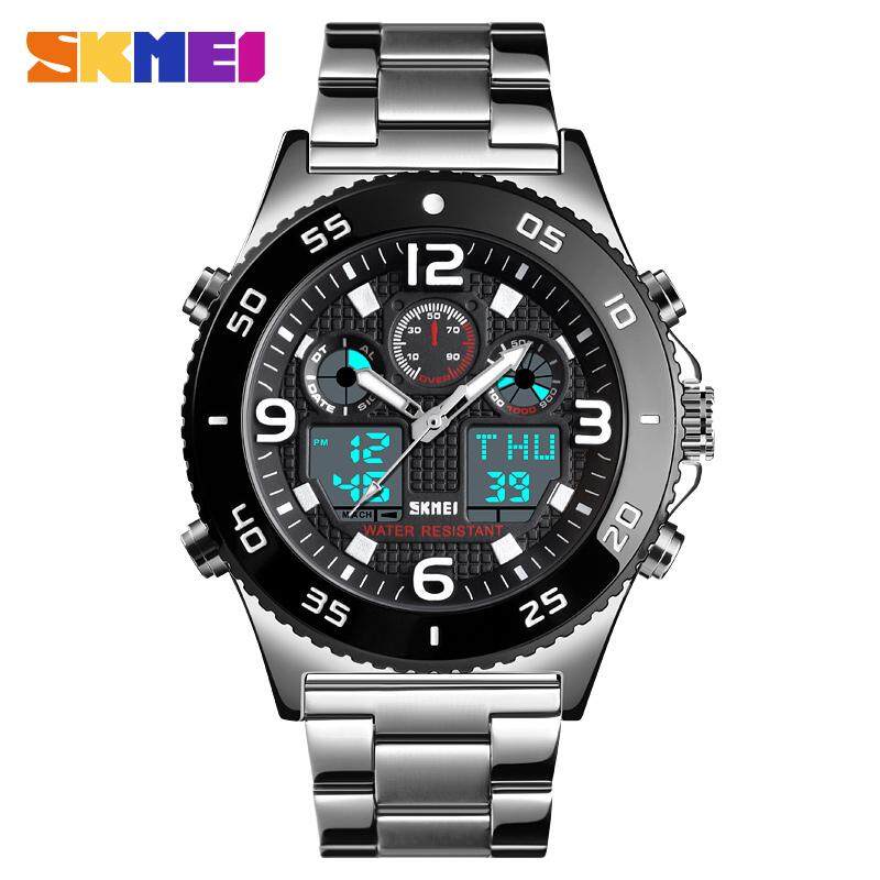 SKMEI Sports Fahsion Watches Stainless Steel Stopwatch Dual Display Waterproof Digital Watch For Man Men 1538B