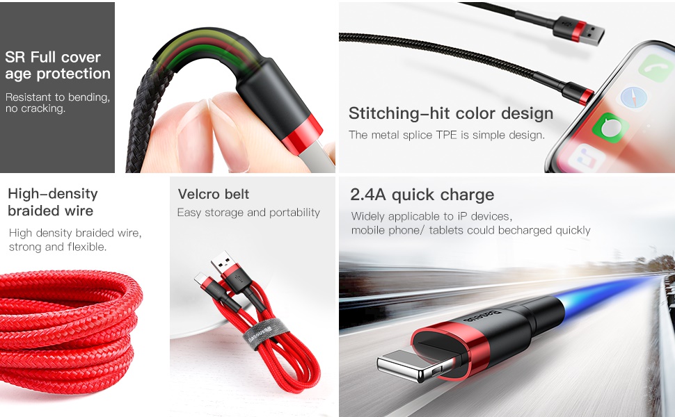 ★Baseus Cafule iPhone IOS USB Data Charging Charger Cable Nylon Braided 2.4A 1.5A IP Sync★ 0.5m / 1m / 2m