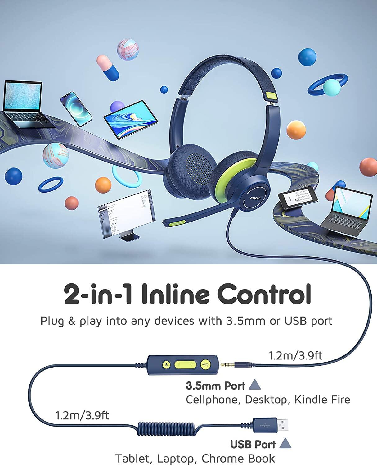 3. WIDE COMPATIBILITY: USB and 3. 5 mm connectivity options let you work on a variety of devices. Compatible with Windows 2000/7/8/10/XP/Vista, Mac OS X, iOS, Android, Tablet PC. Note: Please choose USB connection if you wanna mute function.