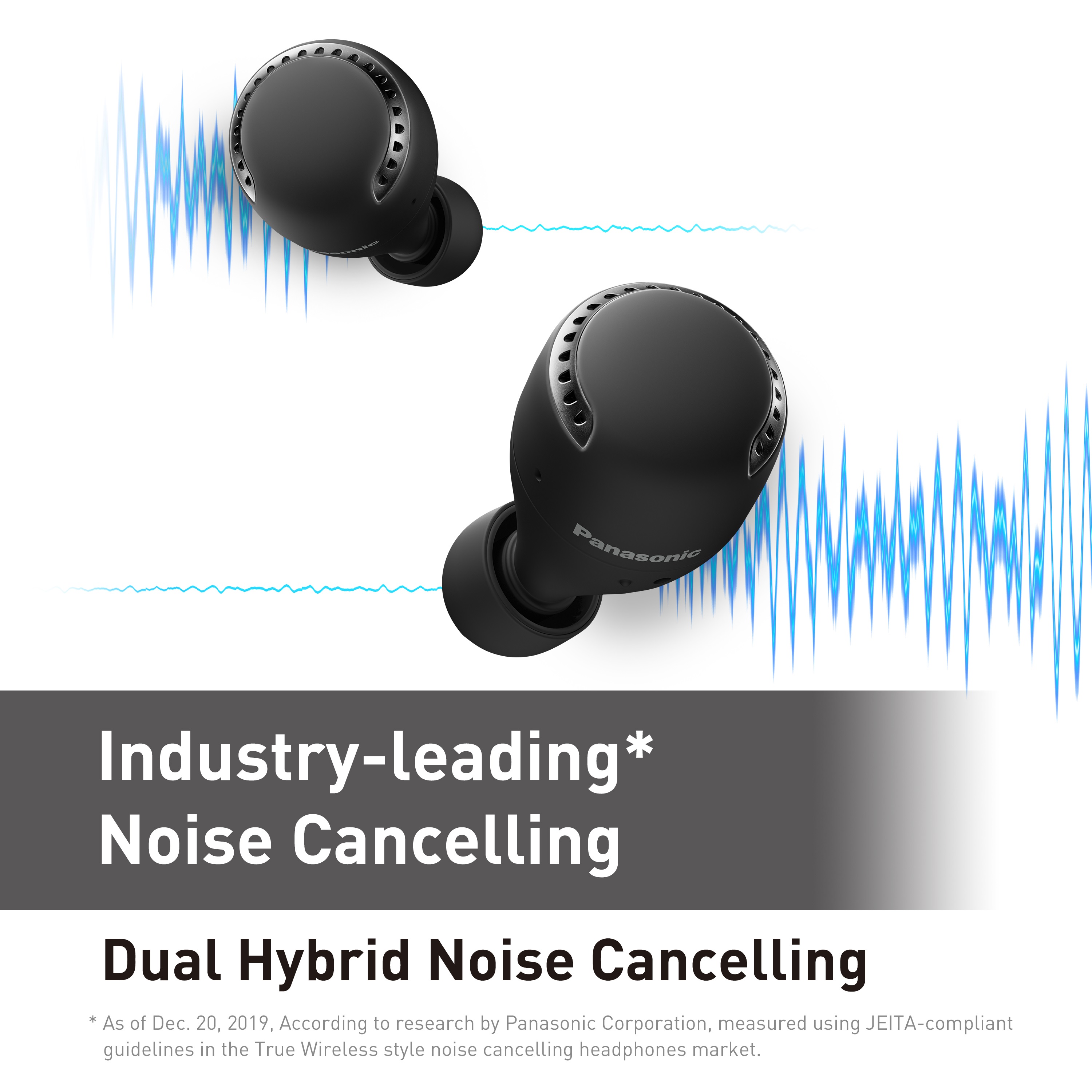 *As of Dec. 20, 2019, According to research by Panasonic Corporation, measured using JEITA-compliant guidelines in the True Wireless style noise cancelling headphones market.