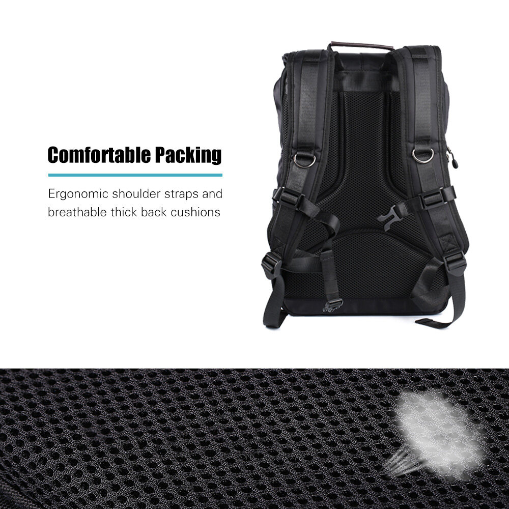 Adjustable padded double shoulder straps are thick for comfortable packing, H-shaped straps can better fix the bag, and breathable back cushion make you feel less stress.