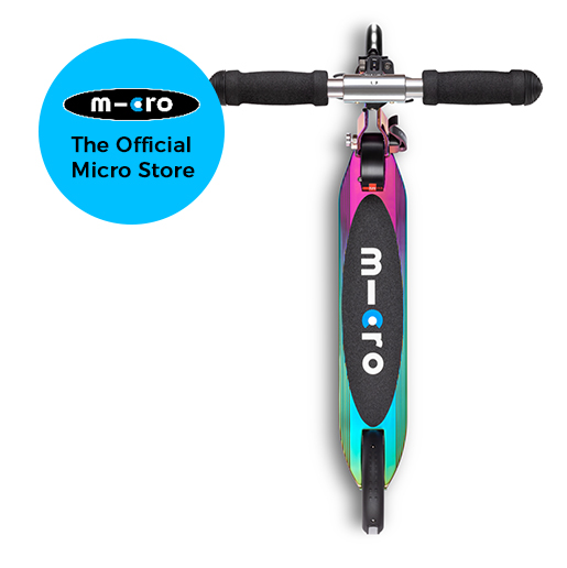 The Micro Sprite can fold up and is easy to carry. This versatile aluminium scooter has been a popular companion for years amongst kids going to school and also commuters. This series now has LED wheels at the front and rear giving this classic Micro Scooter that extra something.