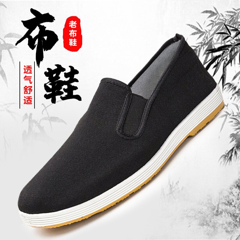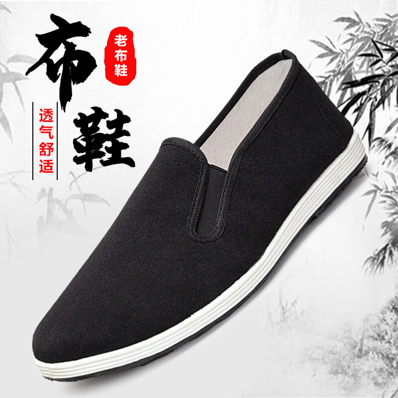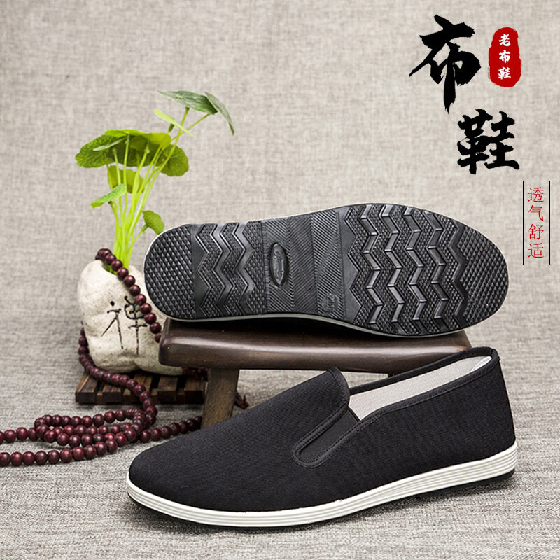 Old Beijing Cloth Shoes Men's Shoes Summer Slip-on Strong Cloth Soles Canvas Shoes Middle-Aged and Elderly Dad Single Shoes Work Black Cloth Shoes