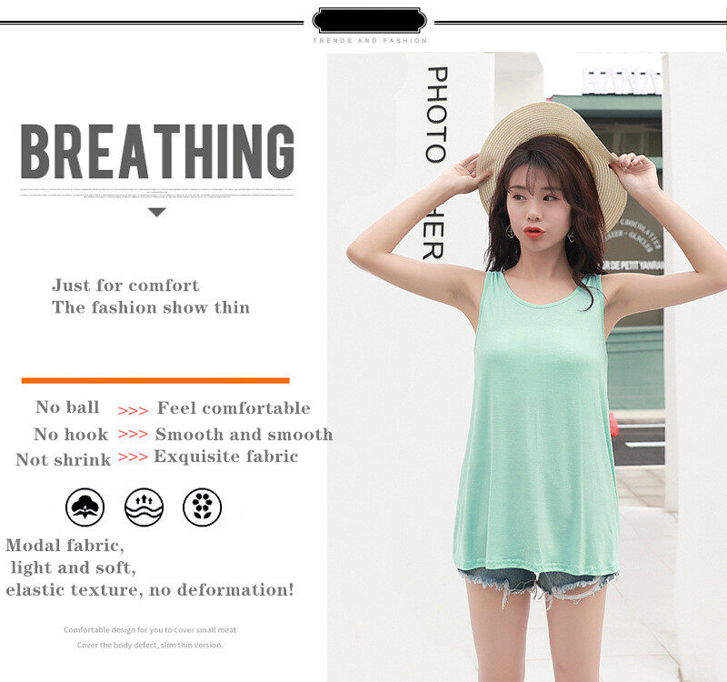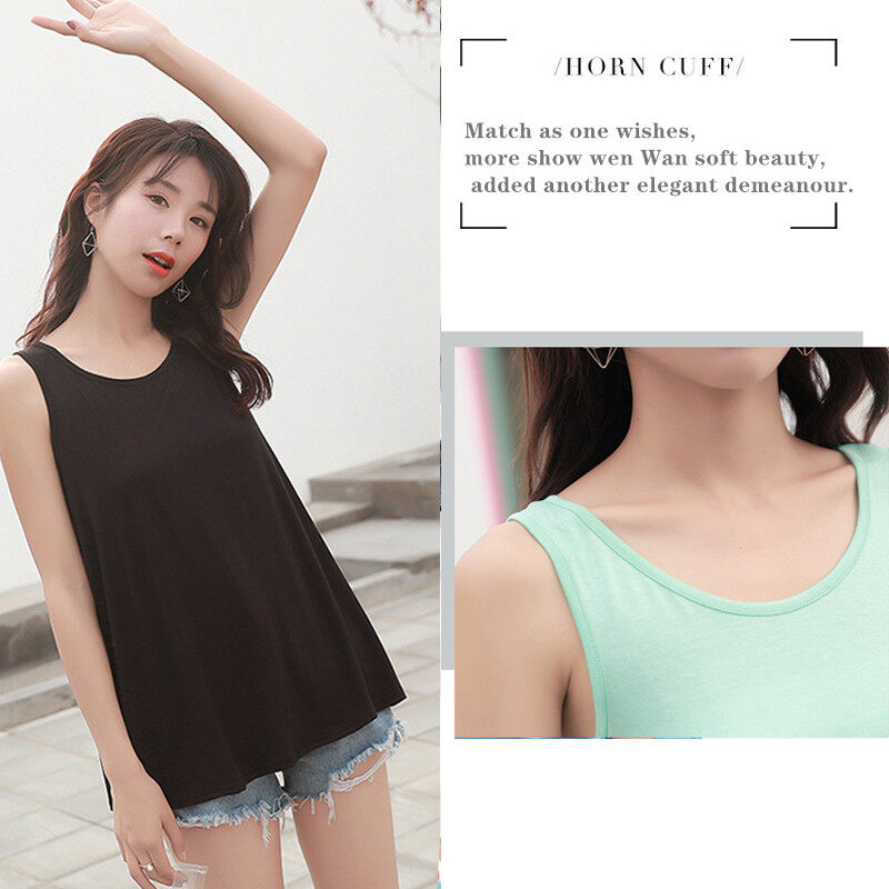 Ready Stock Summer Women's Camisole plain Tank Top Modal Loose Plus Size Bottoming Ladies Solid color Cotton Casual Vest 45-90 kg