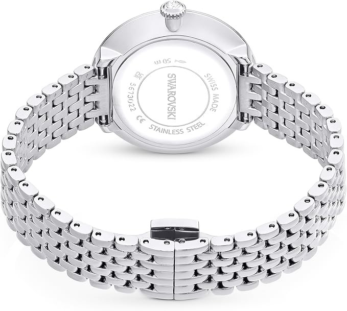Shimmering Style: Featuring a stainless steel case with a sparkling crystal pavé bezel and a single crystal in the crown, this timepiece sparkles in a way that only Swarovski pieces can